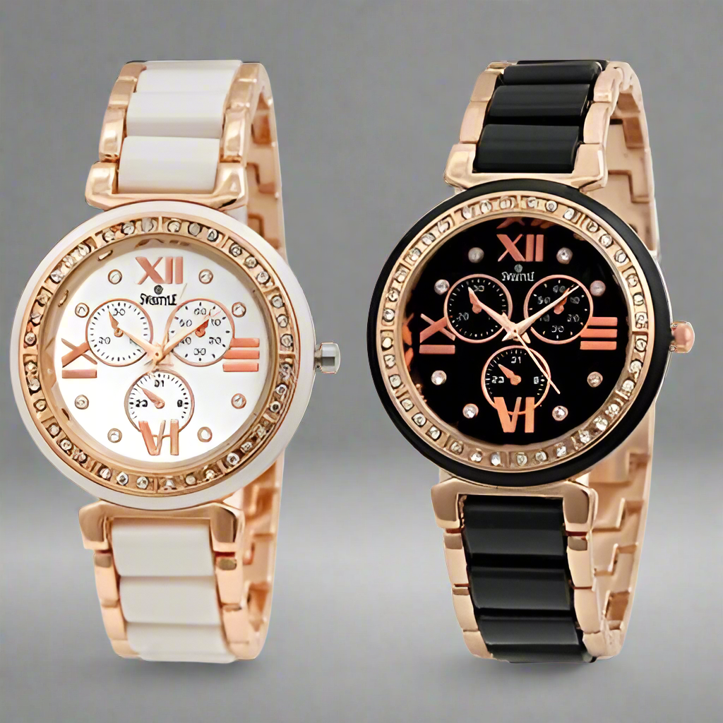 Round Dial stainless steel Analog Watch For Women Combo Of 2